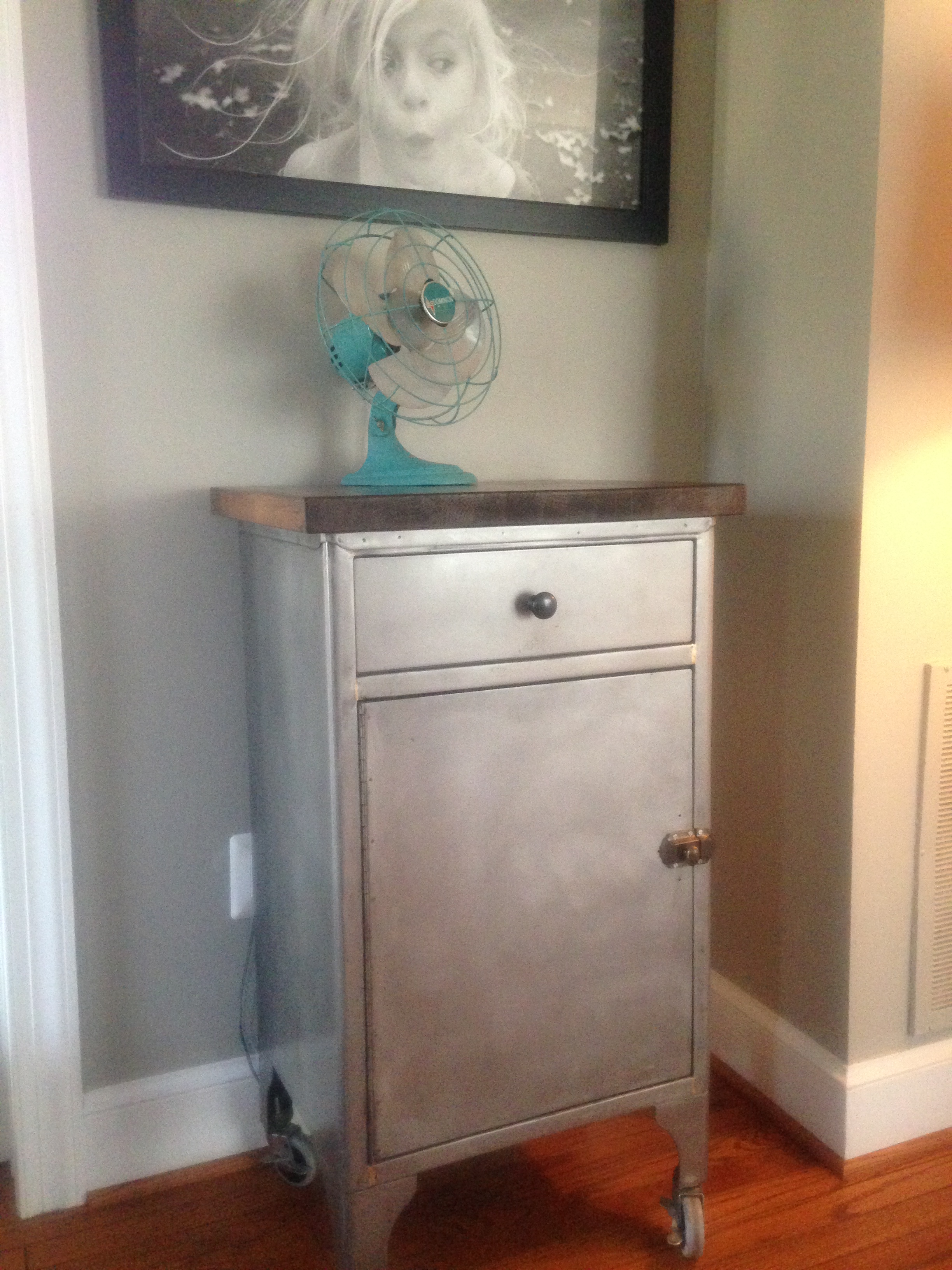 Ben has created some cool pieces out of these types of military and medical cabinets before, sanding the heavy gray-green paint to reveal a shiny silver surface, or sometimes even painting them.
