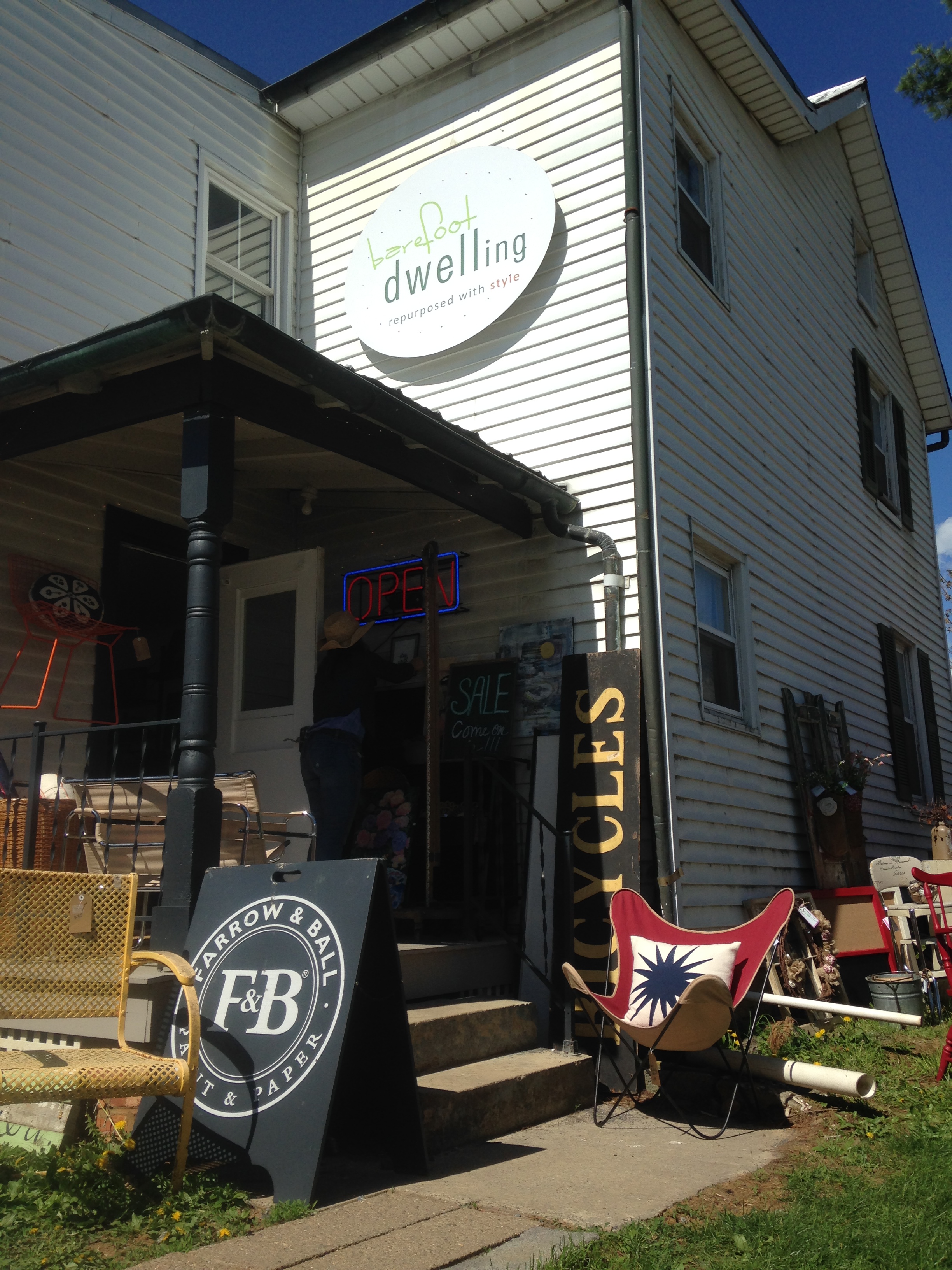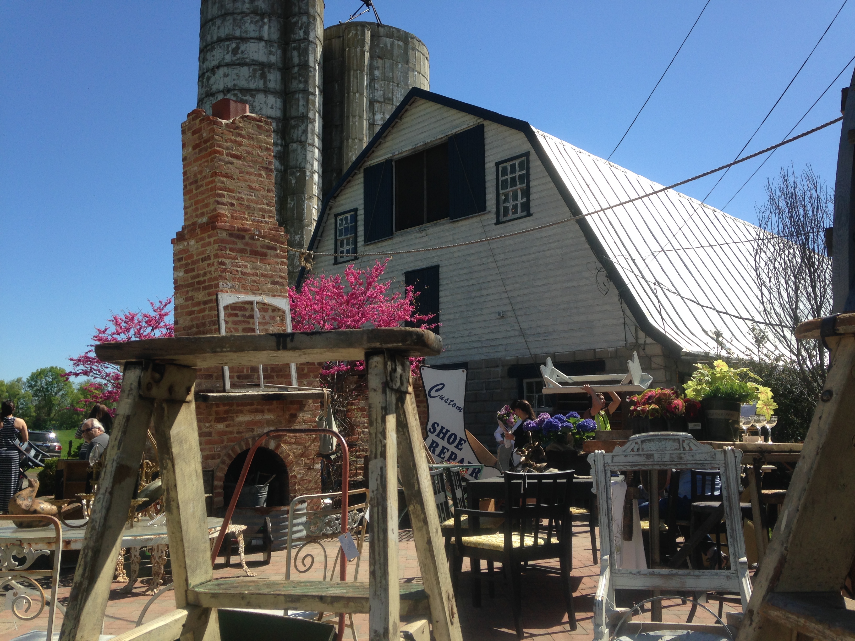 We had a great time at the Chartreuse Barn Spring Market Days last weekend. The beautiful weather brought out a ton of buyers and treasure hunters. We were so busy with our own shop that I did not get much of a chance to explore everything on the grounds — but from what I saw, those looking for treasures were surely not disappointed. Chartreuse features 6 historic barns/buildings filled to the brim with unique and vintage goods, and last weekend the grounds were full of even more goodies than usual (like ours!). It was a great experience for our first foray into staging and designing our space for retail, and we had a blast talking with customers about our process, our projects, and custom order requests. Here are some pics from our shop and a few from around the barns and grounds. You can check out more about Chartreuse at http://www.chartreuseandco.com.