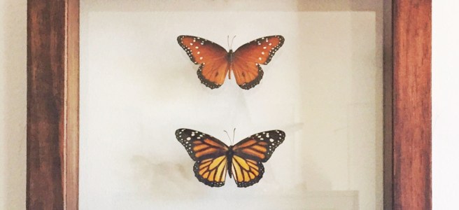 We filled many orders for Christmas and Valentines gifts for families looking for a special gifts. Above is a custom order for a family with four children, with each butterfly representing the personality of a different child. Most of our custom butterflies are large and exotic butterflies from around the world, but a customer asked us to create a framed Monarch because it was special to his wife. We happened to have another butterfly in the same genus in stock and added it to the frame because they looked so beautiful together.